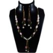 Green Aventurine & Rose Quartz Tumble beads & 8mm White King stone Beads with Gold Polish Copper Chain & Beads Necklace is 8" to 9" inches long with Earrings.